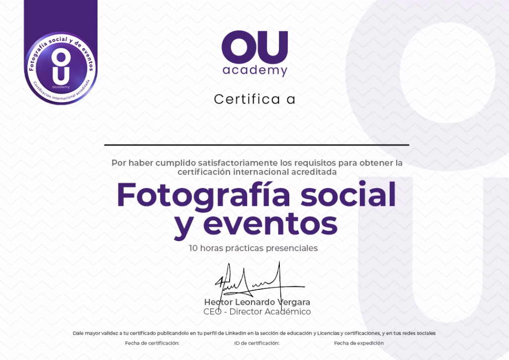Conviértete en un narrador visual. Aprenderás a documentar la emoción de una boda, la energía de una fiesta o la formalidad de un evento corporativo. Domina la técnica en baja luz, el uso del flash (dentro y fuera de cámara) y el flujo de trabajo para entregar cientos de fotos impactantes.